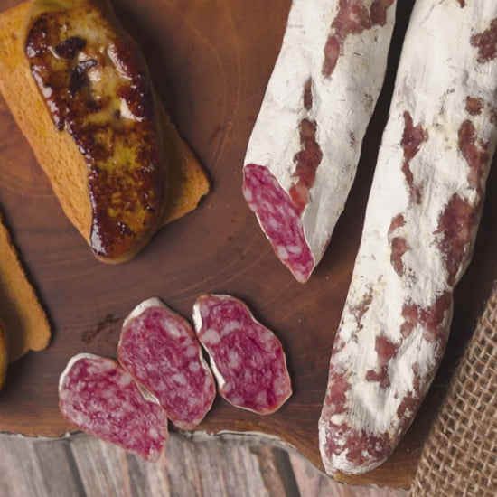 Nuestro fuet de pato es una auténtica delicia gourmet que combina la suavidad y la intensidad de la carne de pato con la tradición del mejor embutido curado. Su sabor refinado y su textura jugosa lo convierten en una experiencia única, perfecta para los paladares más exigentes.