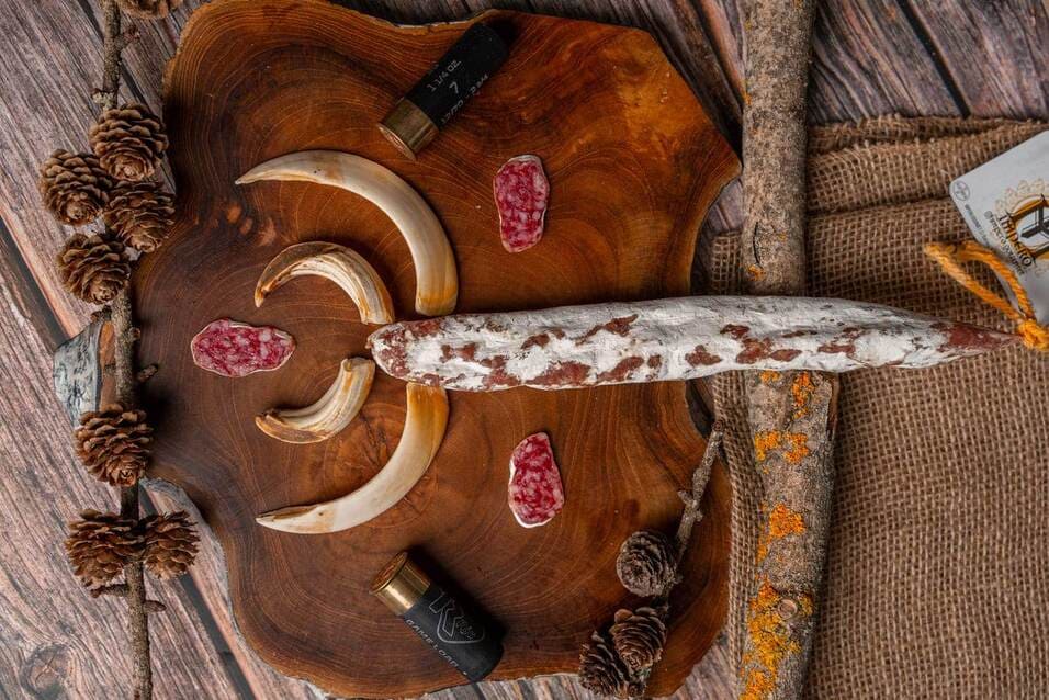 Nuestro fuet de jabalí es una auténtica joya gastronómica que captura la intensidad y el sabor profundo de la carne de jabalí, fusionado con la curación tradicional del mejor embutido. Su carácter único y su textura firme lo convierten en una experiencia gourmet inigualable, perfecta para los amantes de los sabores potentes y auténticos.